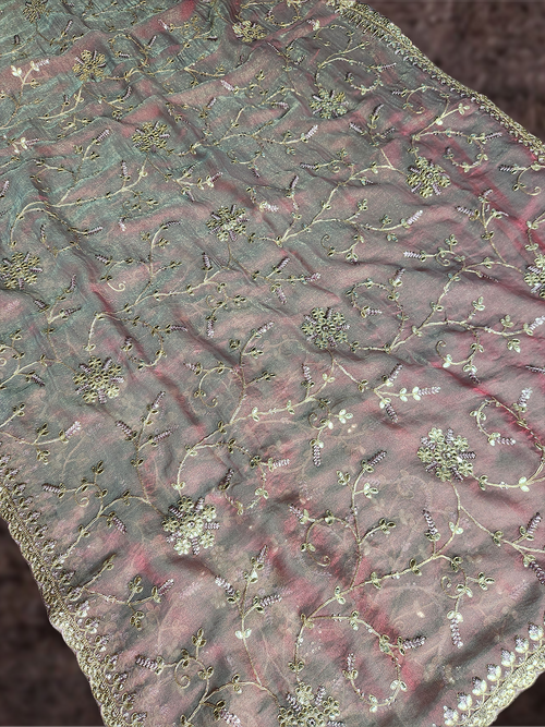 Blush Rose Hand Embroidered Saree with Peacock Motifs - Pink